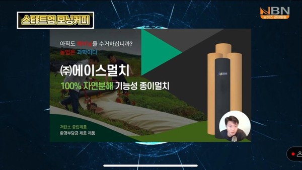 매일 아침 스타트업 소식을 전하는 NBN TV 전화성의 스타트업 모닝커피에서는 농지 토양오염의 주범인 폐비닐을 대체하는 종이멀치를 개발한 '에이스멀치'를 8월28일 소개했다.